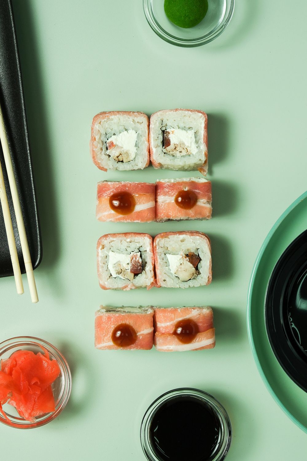 Рис, курица копченая, бекон, сыр сливочный, помидор, соус Терияки