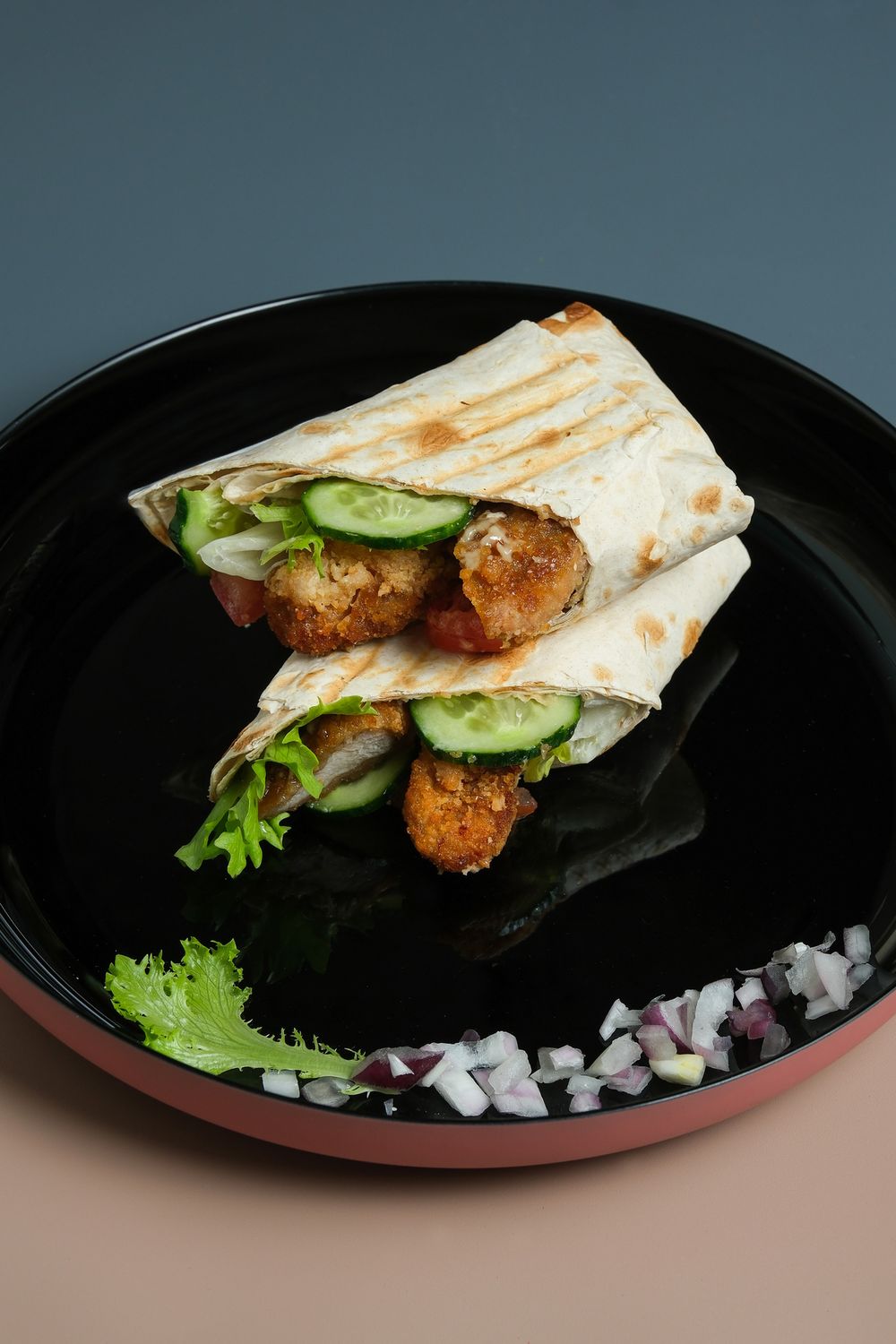 Лаваш курица, салат айсберг, соус цезарь, огурец свежий, помидор свежий