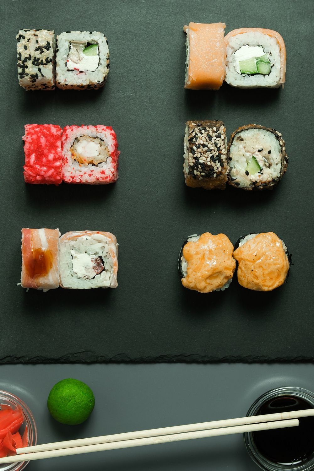 Ролл «Филадельфия», ролл «Эби темпура», ролл «Дракон», ролл «Якитори», ролл «Самурай», ролл «Ири-гома»